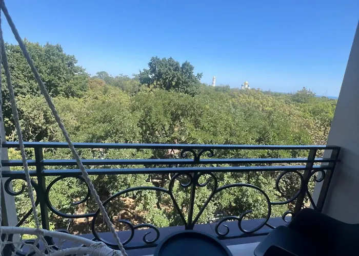 Das 30 m² große Апартаменти У Моря Odessa bezaubert mit einem Ausblick auf der Garten und liegt ungefähr 6 km von der Arcadia City in Odessa entfernt. Das Apartment verfügt über WLAN sowie einen privaten Parkplatz für Gäste, die mit dem Auto anreisen.